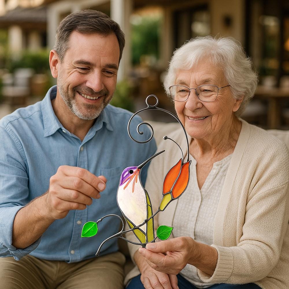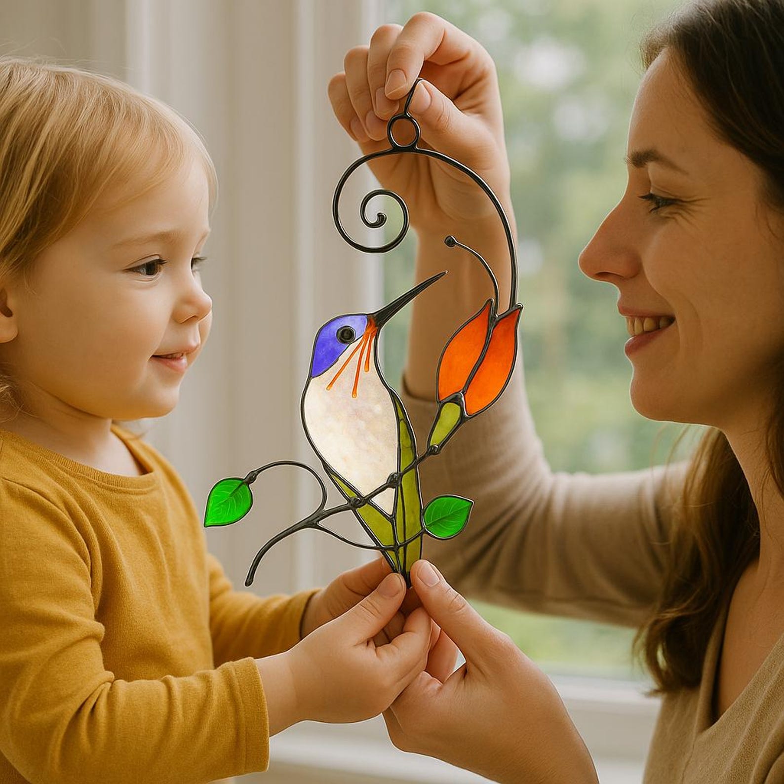 This exquisite handcrafted stained glass suncatcher isn’t just a decoration — it’s a daily dose of joy for your spirit.