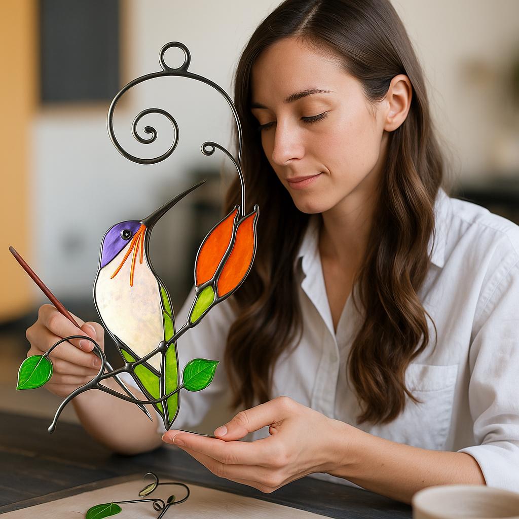 Handmade Hummingbird Stained Glass Suncatcher, Tiffany Art Window Hanging