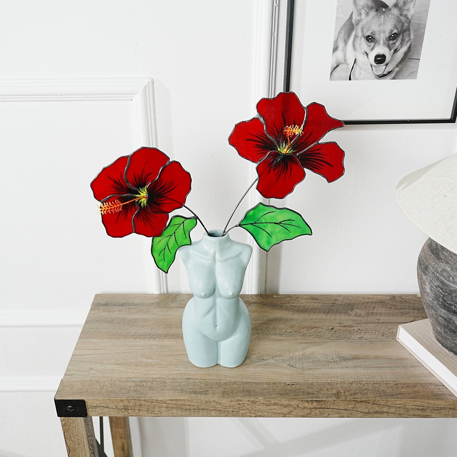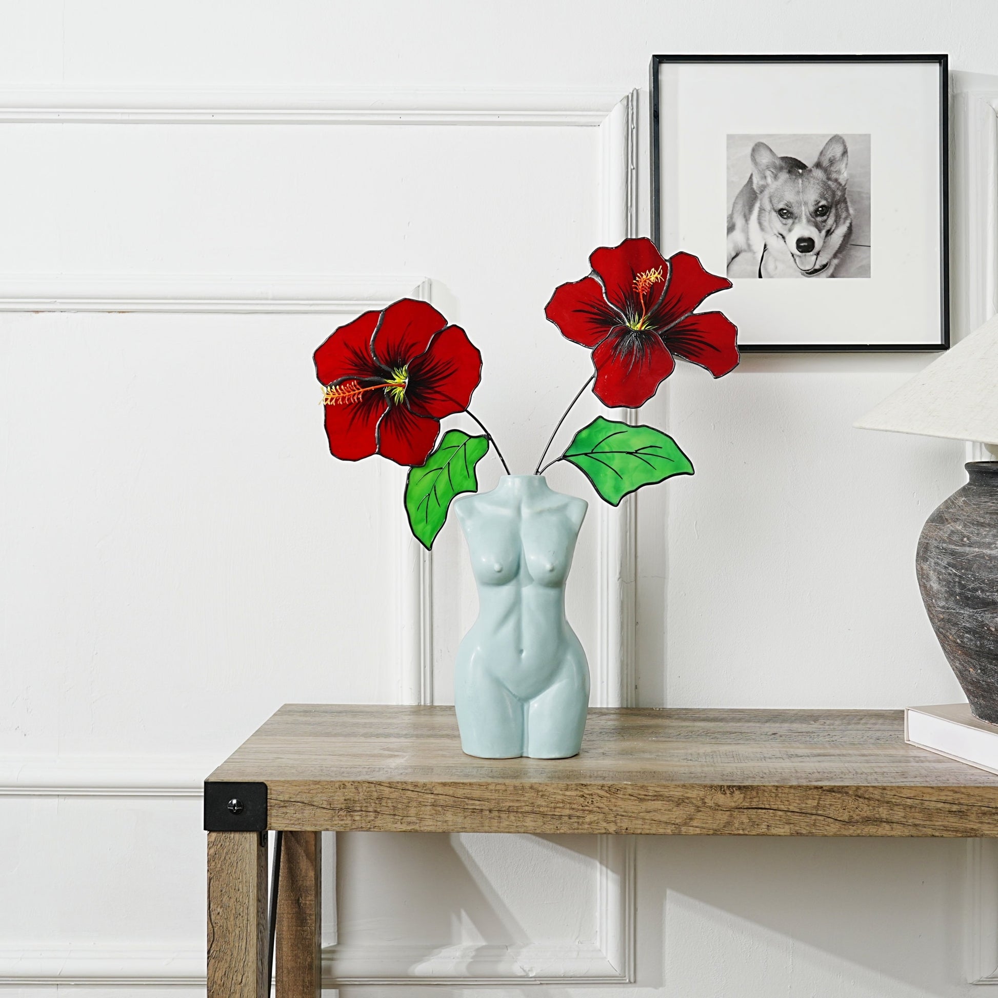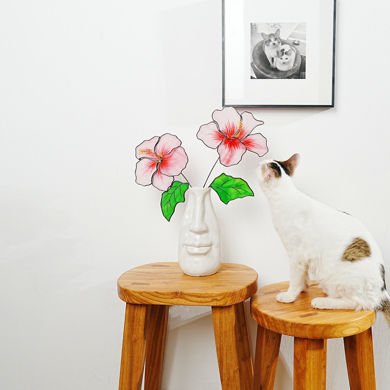 Hawaii Hibiscus Stained Glass Flowers: Home Decor, Set of 2