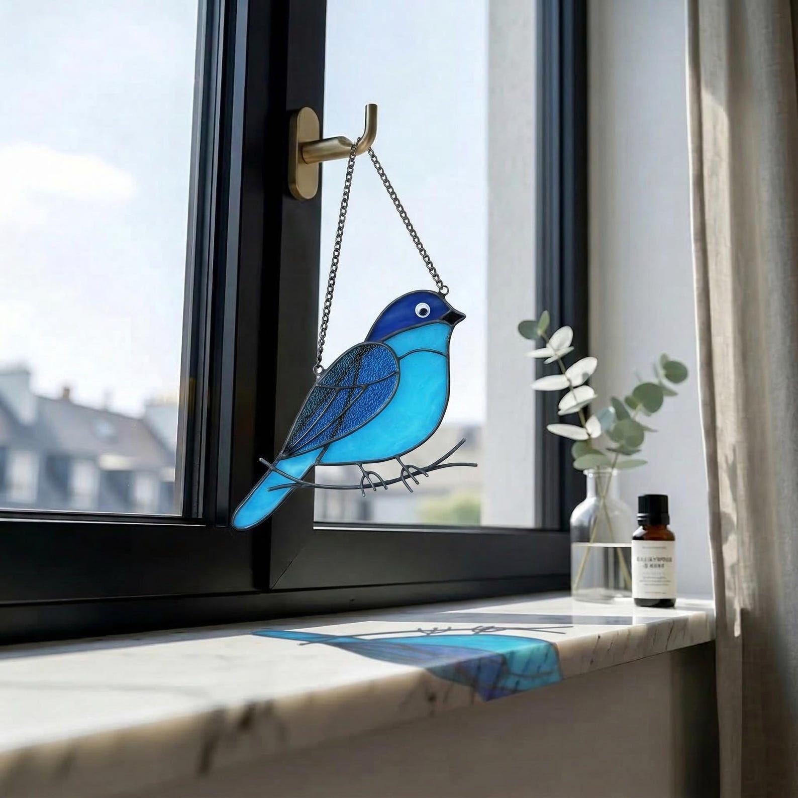 ‼️ Please Note: Because this suncatcher is 100% handcrafted with cut glass, slight variations in the vibrant blue tones and glass textures are perfectly normal. This ensures your bluebird is a truly one-of-a-kind piece of art!