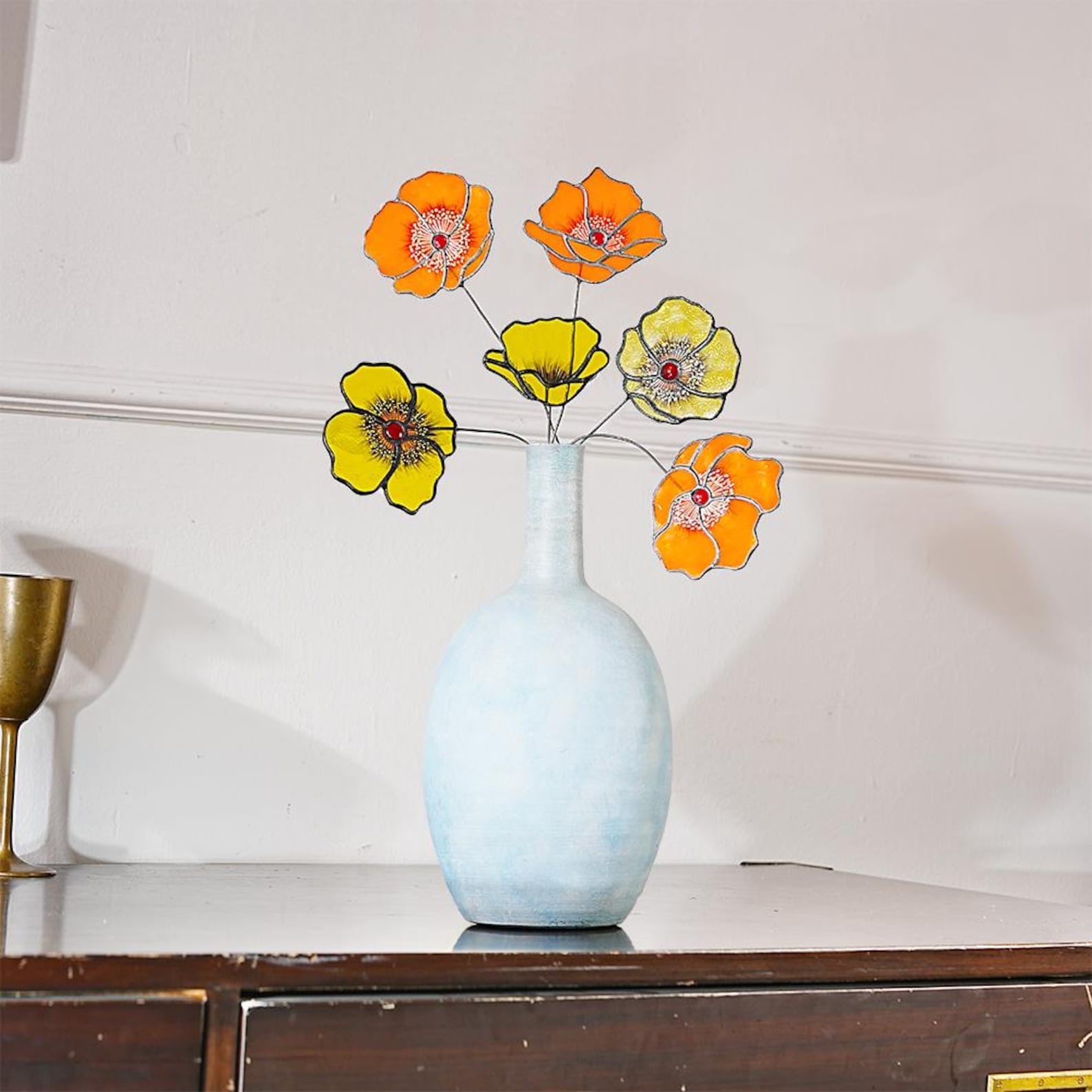 Stained Glass California Poppy Suncatcher, Set of 6 Flower Bouquet