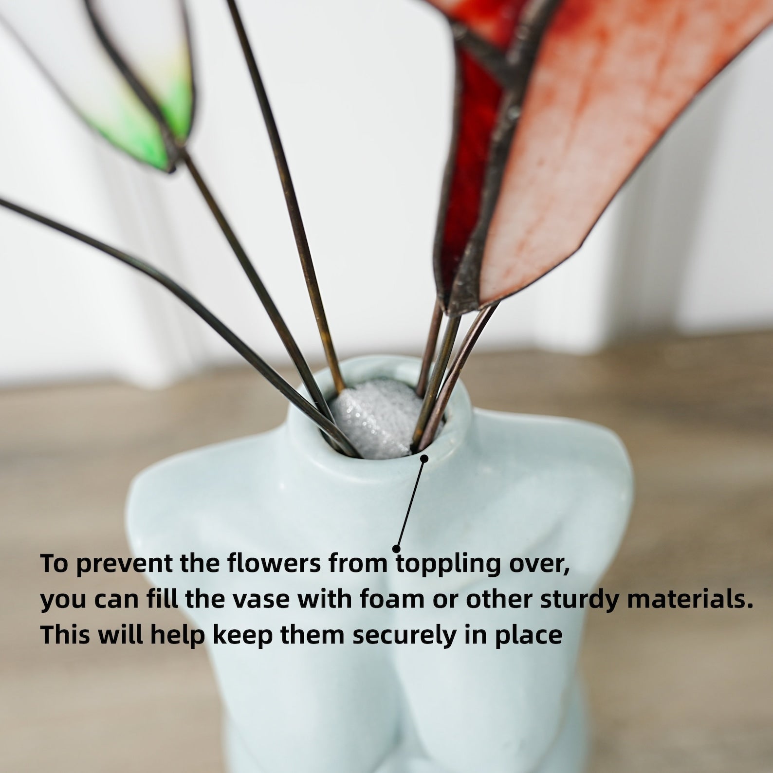 To prevent the flowers from toppling over, you can fill the vase with foam or other sturdy materials. This will help keep them securely in place.