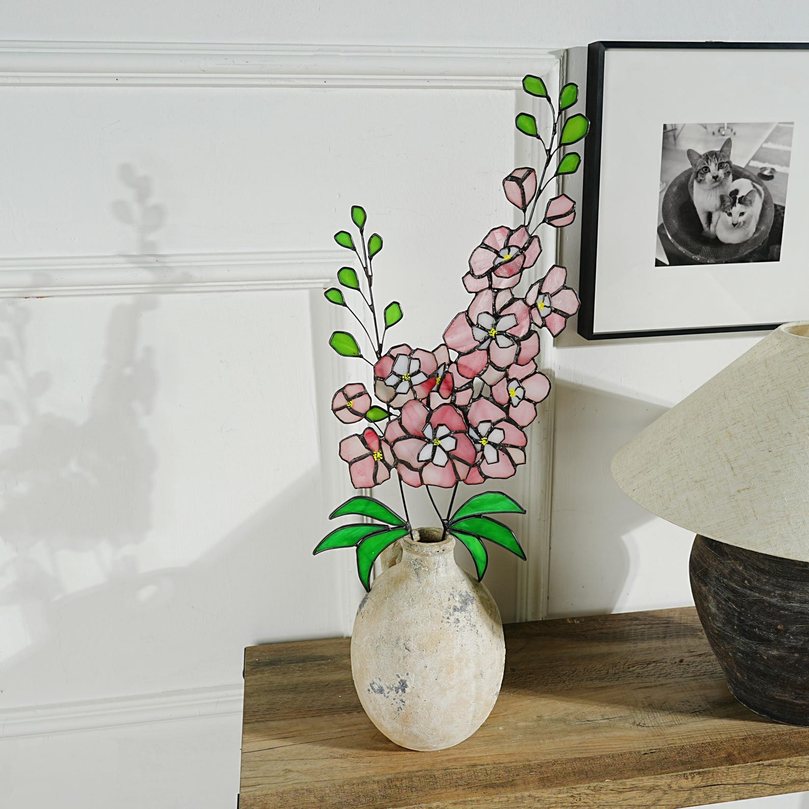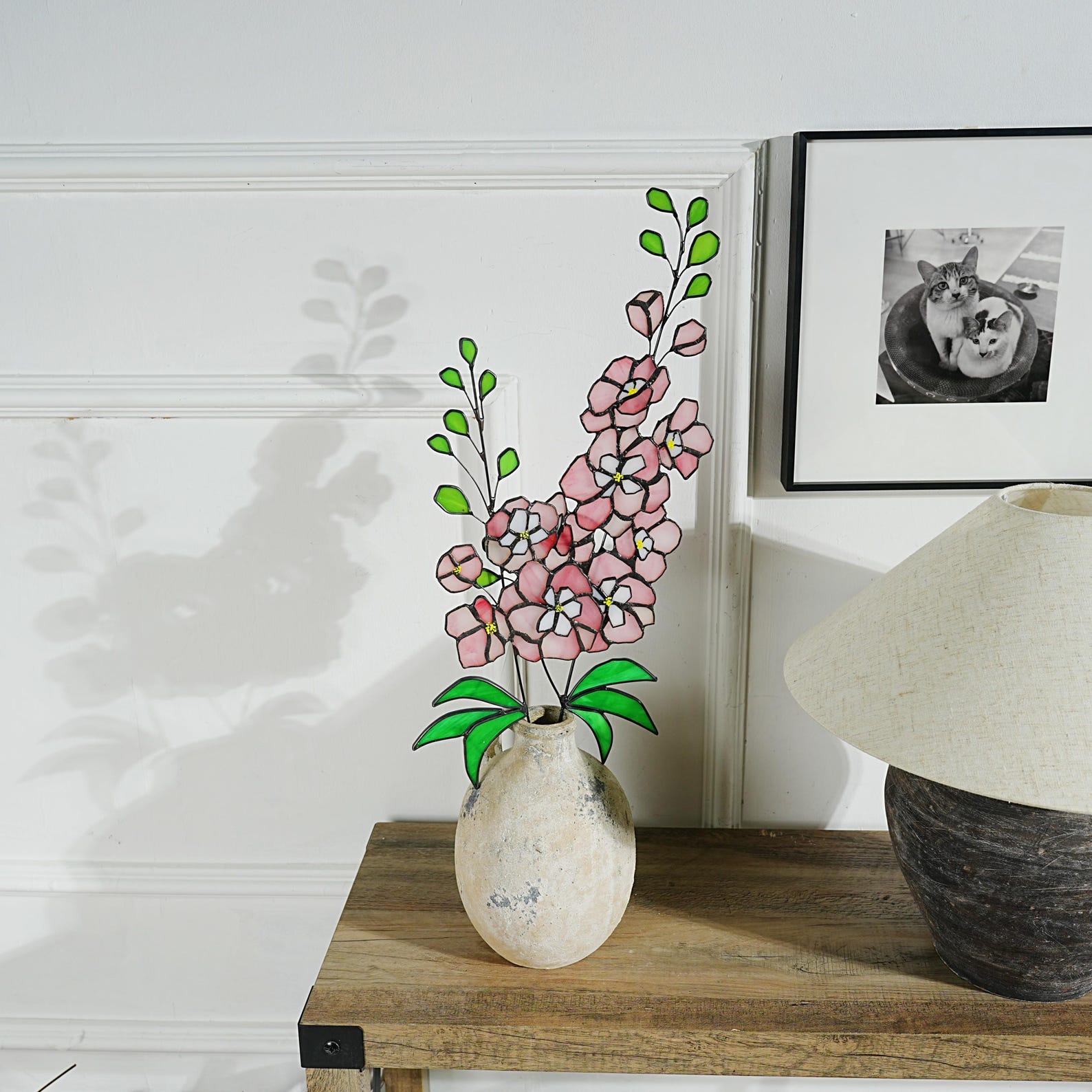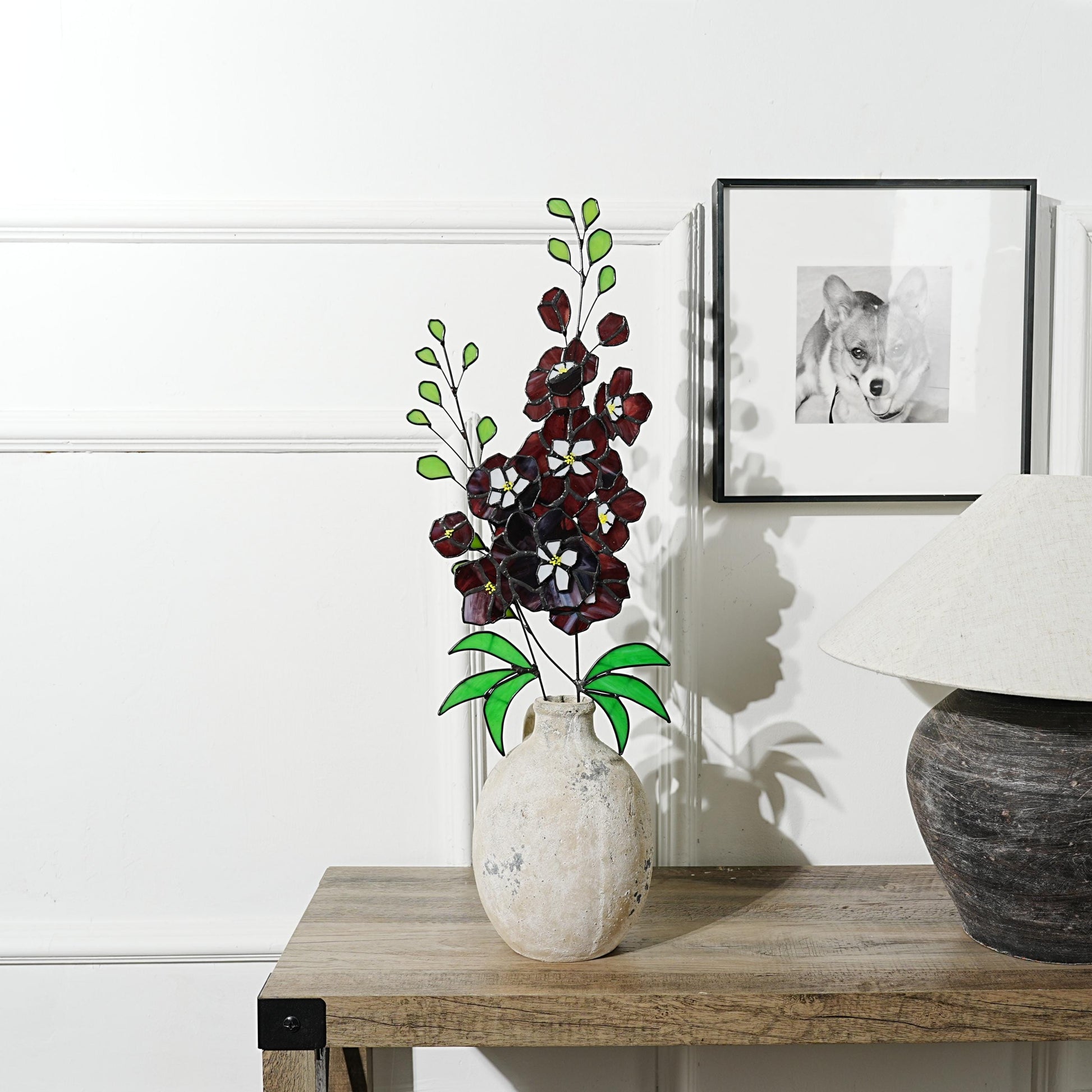 Stained Glass Delphinium Flower Decor, Blue & Purple, Set of 2