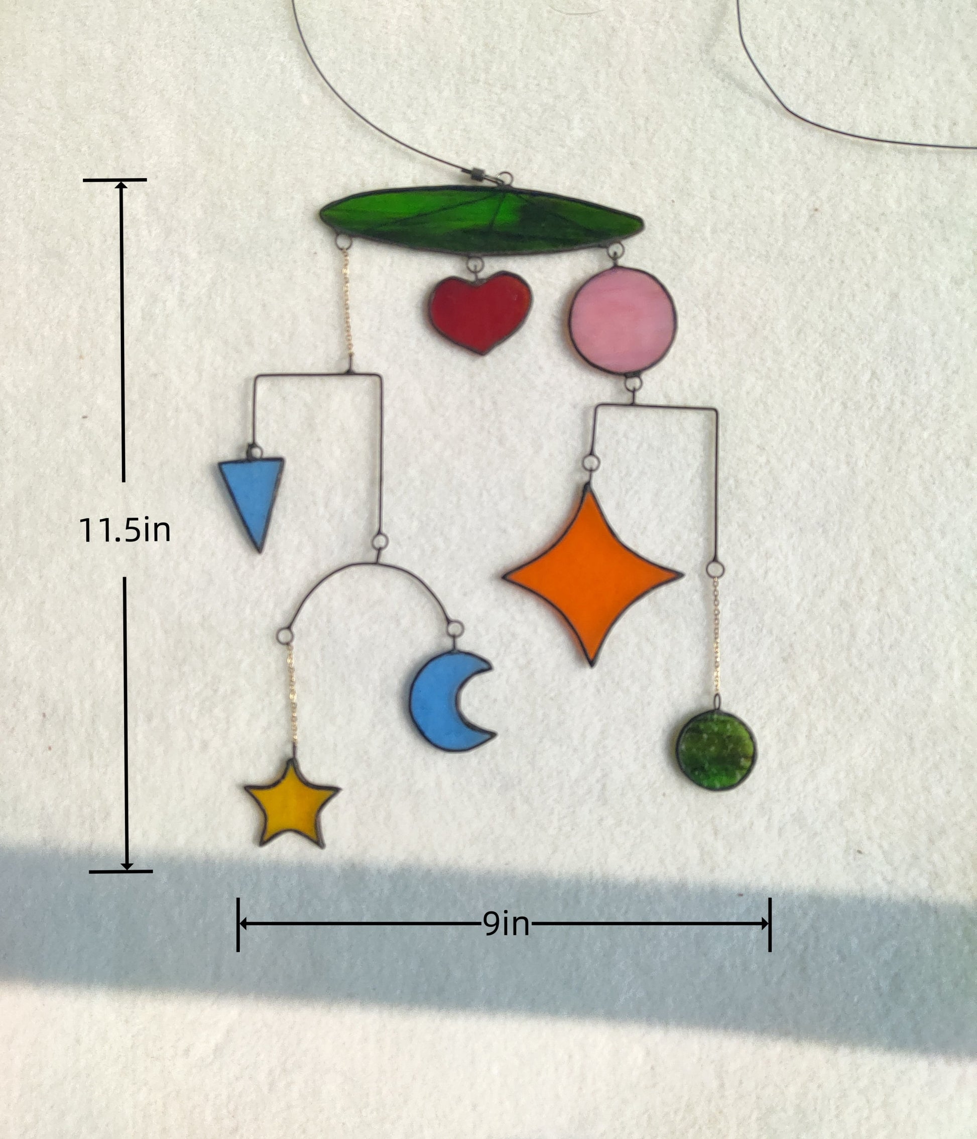 This beautiful mobile suncatcher features a vibrant Geometric patterns design made of stained glass